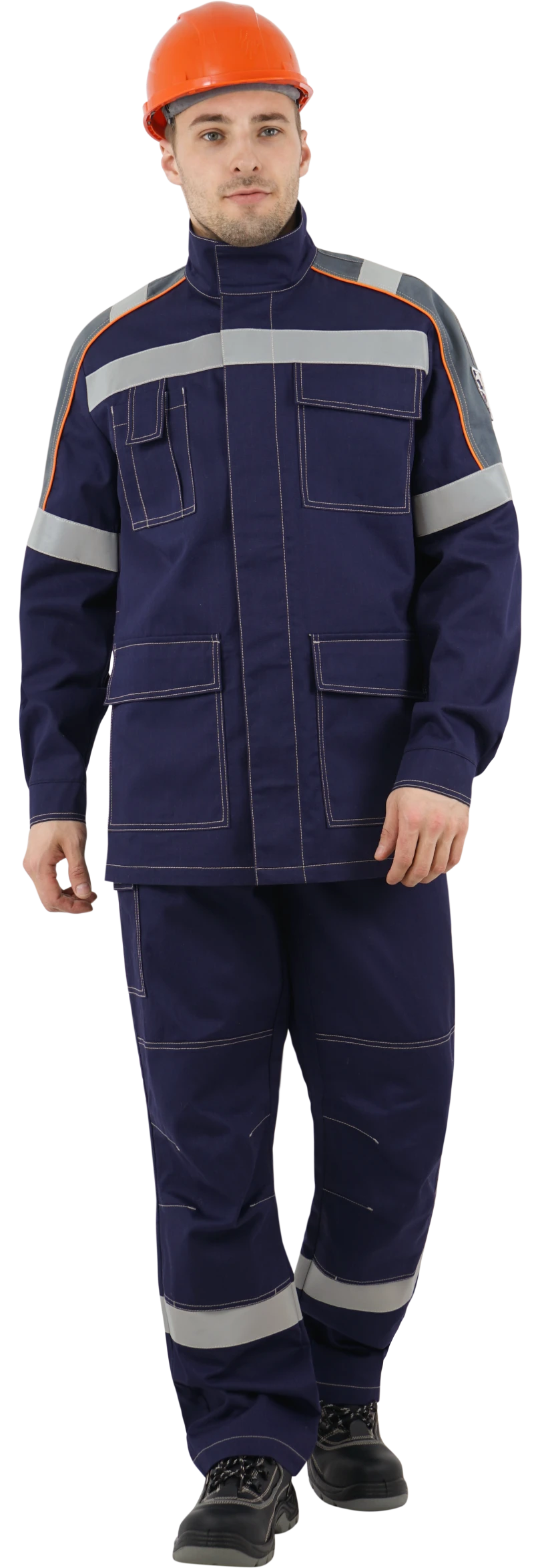 В костюме используется огнестойкая световозвращающая полоса шириной 50 мм. Огнестойкие нитки Nomex.