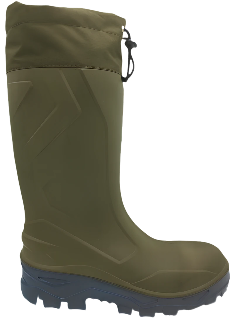 Сапоги «Патриот М», изготавливаются из полиуретана на подошве ПУ, изготовленной методом прямого литья, с настрочной манжетой из ткани «Оксфорд» на шнурке с фиксатором. Дополнительно оснащены композитным подноском (200 Дж) и антипрокольной кевларовой стелькой (1200 Н). Предназначены для работы и активного отдыха в сложных погодных условиях, включая грязь, снег и сырость. Они подходят для строительных работ, охоты, рыбалки, а также для других ситуаций, где требуется надежная защита от влаги и холода в тяжелых условиях труда.