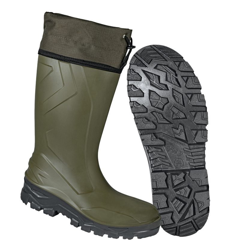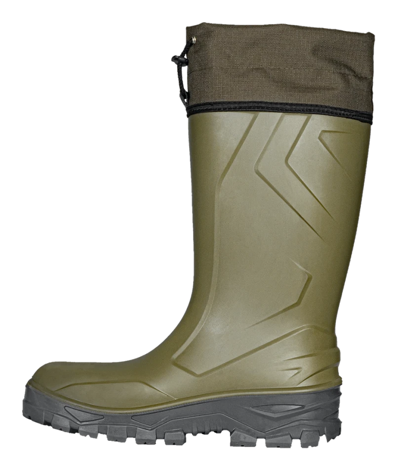 Сапоги «Патриот М», изготавливаются из полиуретана на подошве ПУ, изготовленной методом прямого литья, с настрочной манжетой из ткани «Оксфорд» на шнурке с фиксатором. Дополнительно оснащены композитным подноском (200 Дж) и антипрокольной кевларовой стелькой (1200 Н). Предназначены для работы и активного отдыха в сложных погодных условиях, включая грязь, снег и сырость. Они подходят для строительных работ, охоты, рыбалки, а также для других ситуаций, где требуется надежная защита от влаги и холода в тяжелых условиях труда.