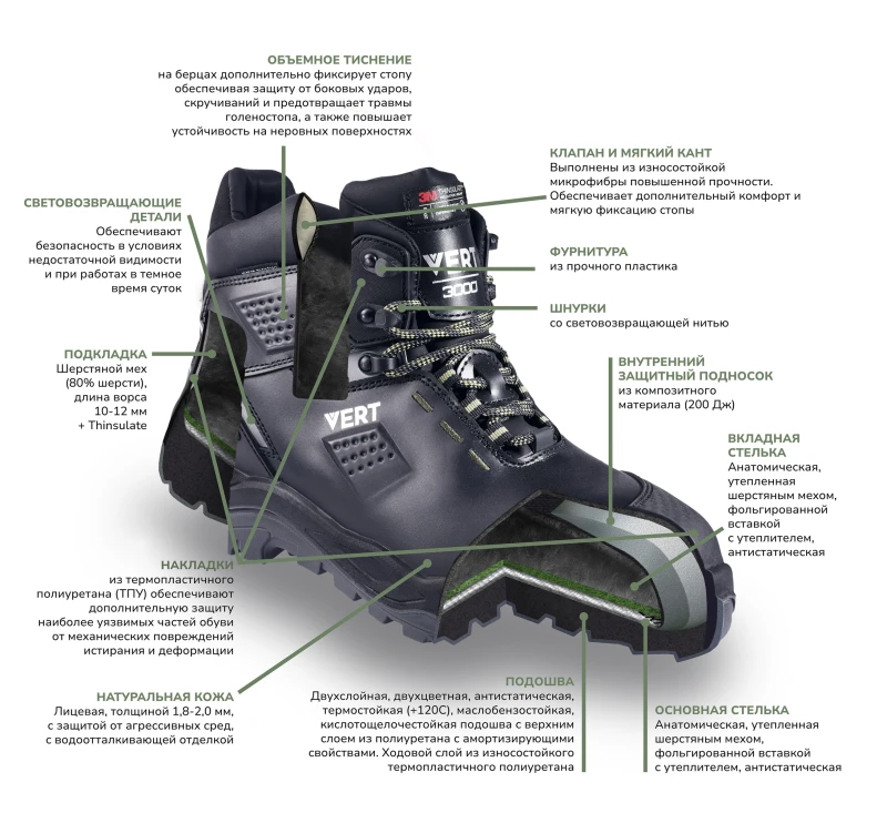 Покупайте Ботинки VERT (VERT 3015) с КП и КС Thinsulate® шерст.мех, кожаные ПУ/ТПУ по цене 6435 руб. оптом или в розницу в магазине спецодежды СнабТим. Большой выбор защитной одежды, СИЗ и других хозтоваров в Казани. Заказывайте онлайн или по телефону +7 (991) 190-59-22