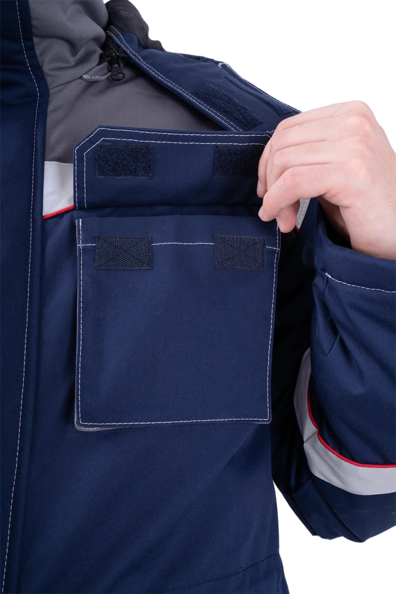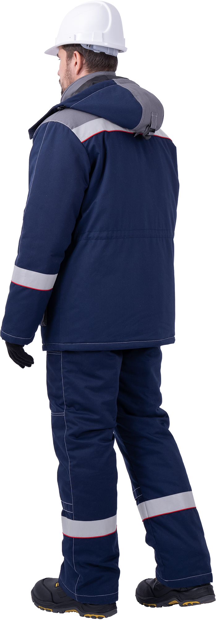 Костюм мужской НАДЫМ от пониженных температур воздуха и ветра, механических воздействий и ОПЗ (куртка, полукомбинезон), темно-синий/серый