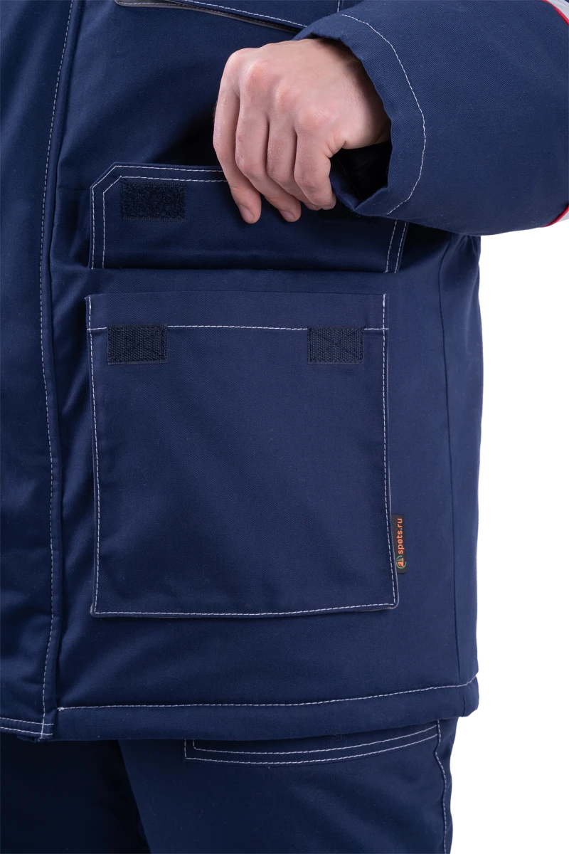 В костюме используются ветрозащитная ткань и световозвращающая полоса (СВП) 50 мм.