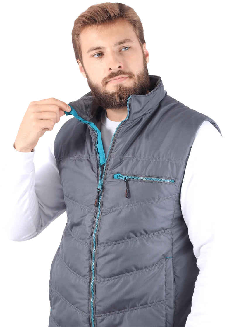 Покупайте Жилет мужской ГАЛАКТИКА утепленный, серый/бирюза по цене договорной руб. оптом или в розницу в магазине спецодежды СнабТим. Большой выбор защитной одежды, СИЗ и других хозтоваров в Казани. Заказывайте онлайн или по телефону +7 (991) 190-59-22