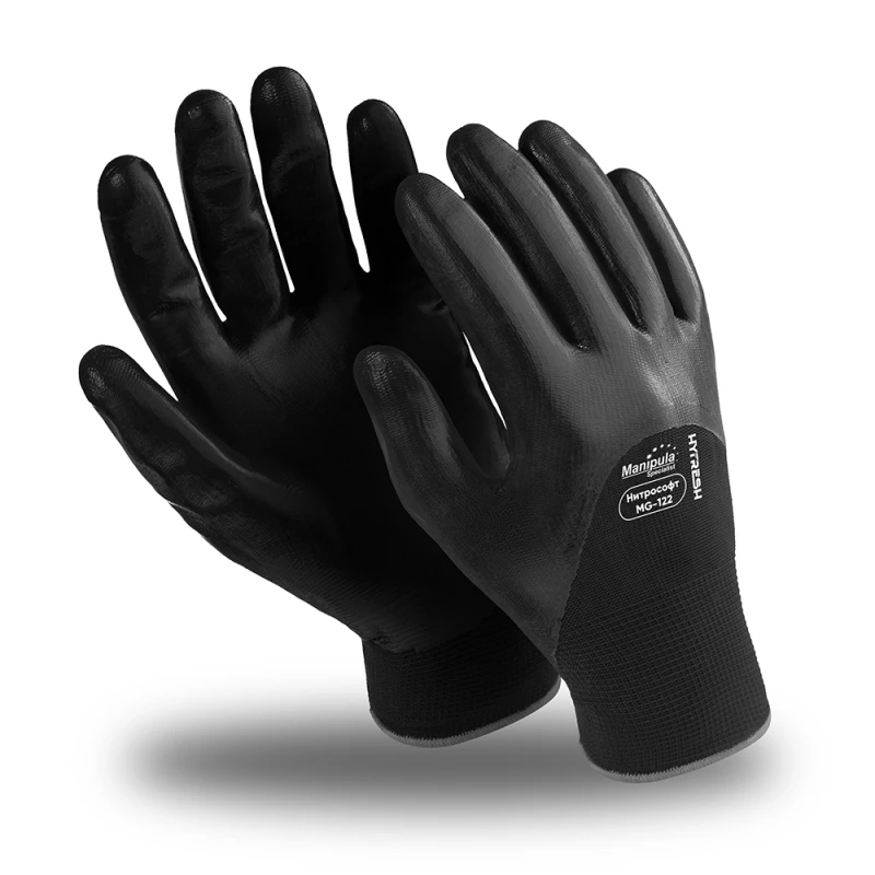 Перчатки НИТРОСОФТ (MG-122), нейлон, нитрил 3/4, оверлок, цвет черный (РФ)